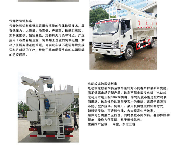 ?散裝飼料罐架設(shè)在專用車的底盤上,專用設(shè)施由罐體總成、輸送系統(tǒng)以將飼料輸出。車頂平置的一根活動(dòng)卸料絞龍可自由回轉(zhuǎn)和抬升,抬升的仰角可達(dá)60度。運(yùn)輸時(shí),頂部的螺旋管平臥在罐頂;卸料時(shí)則抬起,操縱裝置一般裝在罐體尾部,可以直接通過按鈕,使管端的出料口與畜禽飼養(yǎng)場(chǎng)貯料罐頂部的進(jìn)料門相接、對(duì)準(zhǔn),完成卸料的整套操作。湖北程力散裝飼料運(yùn)輸車廠家提供散裝飼料車人性化服務(wù),如果您家有底盤,那么我可以建議您自帶底盤,我們給您改裝飼料罐,只要您能想得到的,我們都會(huì)做得到?。